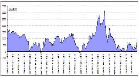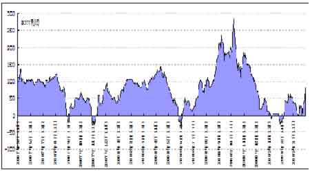 圖為江浙滌綸長絲DIY利潤走勢圖。(圖片來源:國泰君安期貨)
