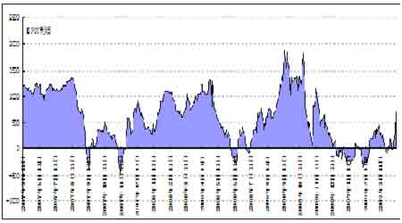 圖為江浙滌綸長絲POY利潤走勢(shì)圖。(圖片來源:國泰君安期貨)