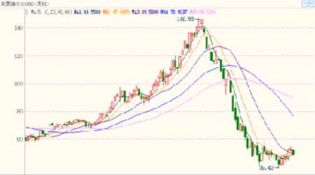 圖一:國際原油0905合約周線圖