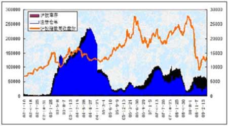 圖4,滬膠庫存狀況與行情聯(lián)動