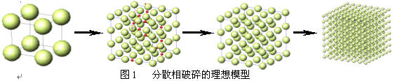 c0為初始時刻的顆粒尺寸,t為混煉時間。式(1)描述了分散相顆粒的粒徑與時間的關系,暫稱為”分散理論”,其中n和b成為分散系數。可建立分散相破碎的理想模型 (圖1) 。