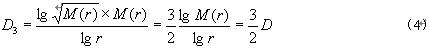若隨著L的變化,S(L)為恒定值,則表示研究對象的復雜程度不隨標尺的變化而變化,即它具有無標度性,或自相似性。通過此種方法求得的是SEM圖像中分散相顆粒分布的分形維數,改值處于0~2范圍內, 基于整個體系具有空間上的自相似性,可根據式(2)推導出分散相顆粒在三維空間分布的分形維數D3。