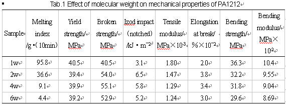 分子量、熱處理和水份對PA1212的力學性能的影響