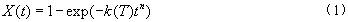 式中積分下限表示結晶起始時刻,計為0時刻;K(T)為溫度T(t)下的非等溫結晶動力學速率常數,K(T)=k(T)1/n。