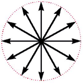 因為偏極光的理論是用波動學來解釋的,所以往后的討論都將光視為電磁波,并且為了簡化易懂,我們只考慮其電場向量E。非偏極光的E可以用圖2表示,圖2中許多對稱等長的輻射線表示E在E、H所組成的平面上振動,并且在各方向振動的機會均等。當E的分布不均時就稱之為偏極化(Polarization),如圖3所示為部份偏極光,當E只在一個方向振動時則稱之為線性偏極光(圖4)。從向量的觀點來看,當圖2中各方向的向量投影到X和Y兩個相互垂直的坐標軸上后,非偏極光可以分解為兩條相垂直的線性偏極光(圖5)。