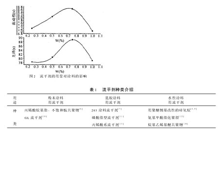 目前,涂料用流平劑種類較多,我們按其使用的場(chǎng)合大致可分為三類,一是粉末涂料用流平劑,二是溶劑型涂料用流平劑,三是乳膠涂料流平劑。表1列出了近幾年來主要報(bào)道研究的產(chǎn)品。
