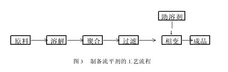 由表1可見,近幾年來,國內(nèi)外對(duì)水性涂料用流平劑進(jìn)行了大量的研究。由于環(huán)保型涂料如:水性涂料、粉末涂料等的研發(fā),帶動(dòng)了與其相關(guān)的流平劑的發(fā)展。流平劑的制備工藝流程如圖3所示,主要包括溶解、聚合、過濾、相變、成品包裝等5個(gè)步驟。
