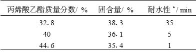 表 1 丙烯酸乙酯用量對乳液性能的影響