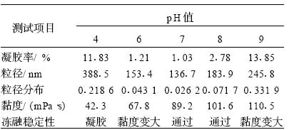 表 7 pH 值對乳液性能的影響