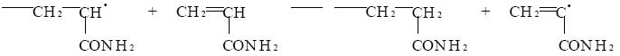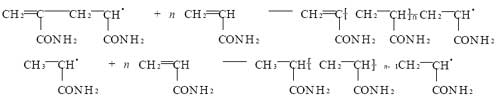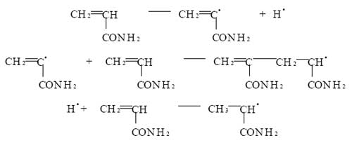 丙烯酰胺水溶液用陽離子交換樹脂交換柱處理 , 以除去其中的阻聚劑 Cu 2+ . 不添加任何引發劑 , 進行水溶液聚合 , 合成聚丙烯酰胺 . 丙烯酰胺分子中含有羰基 (), 為極性雙鍵 . 極性雙鍵呈加成活性 , 且影響到極性雙鍵附近的 Α - C-H 鍵 , 使 Α - C 上的 H 活化 , 易發生轉移反應 , 形成單體自由基和氫原子自由基 [ 4 ] . 由此推斷可能的反應機理如下 :