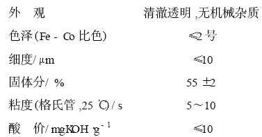 按配方量依次將各原料投入反應(yīng)釜 , 通 N 2 , 加熱升溫到 180 ± 2 ℃ , 保溫回流 2 h , 以后每隔 1 h 升 10 ℃ , 最高酯化溫度不可超過 210 ℃ 。待各項(xiàng)指標(biāo)合格后 , 兌稀 , 過濾 , 包裝 , 備用。