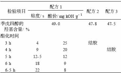 表 3 羥基含量不同的季戊四醇對(duì)合成樹脂的影響