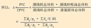 ⑴一般對于高性能外用色漆配方, P V C < CPVC ,即Δ =PVC/CPVC < 1 ,此時涂膜中漆基過量,處于低 PVC 狀態,漆基能完全潤濕顏填料。