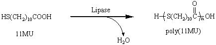 Microbial polyesters containing thioester linkages in their backbone were recently reported by Lüke-Eversloh and Steinbüchel et al. for the first time and comprise a novel class of biopolymer. Microbial homopolymers of polythioester show some unique characteristics such as high melting point and poor solubility against various solvents. The synthetic polythioester has been reported fifty years ago, but commercial production of the polythioester has not been established partially due to the complex preparation methods. In this report, a more straightforward method, the novel lipase-catalyzed preparation of polythioester by the polymerization of 11-mercaptoundecanoic acid (11MU) and its transformation into cyclic oligomers is described.