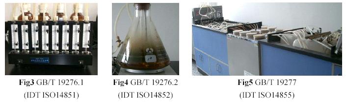 BMG&NTSQP has tested respectively the sample of PBS, PBSA, PLA, PVA, PHBV, PCL, AC, St., Corp fiber, PPC, paper, etc. according to GB/T 19276.1, GB/T 19276.2, GB/T 19277 (IDT ISO 14851, 14852, 14855) . Some apparatus are set according the above standards(see fig3,fig4,fig5).