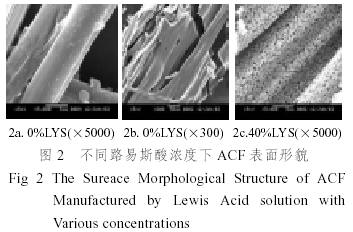 有關(guān)微孔型ACF表面成孔的工藝和機(jī)理已有較系統(tǒng)的研究,我們可以部分借鑒其中的活化技術(shù)[6-8]。對用不同濃度堿金屬鹽溶液預(yù)處理過的粘膠原絲,再采用一種路易斯酸(LYS)對處理過的原材料在低溫階段進(jìn)行預(yù)處理,使其具有耐高溫性能;隨后再在高溫階段實(shí)施活化,活化過程采用的是化學(xué)活化和氣體活化(水蒸氣)相結(jié)合的方法。