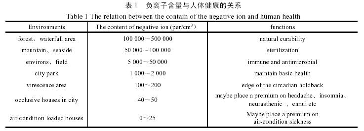 根據(jù)《國際醫(yī)學(xué)》雜志報(bào)道:負(fù)離子含量與人體健康的關(guān)系如下表1。