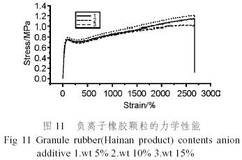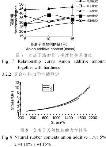 由X射線衍射和SEM的分析討論可知,在負(fù)離子添加劑/橡膠納米復(fù)合材料的制備過程中,納米級負(fù)離子添加劑均勻的分散在橡膠基體中使納米復(fù)合材料具有優(yōu)良的物理力學(xué)性能。