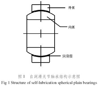 自潤滑關節軸承由內、外圈及潤滑層三部分組成,其結構如圖1所示。軸承內圈與外圈為球面接觸,其間是潤滑層,在使用過程中起到自潤滑作用。