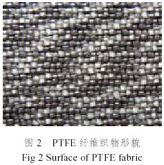 聚四氟乙烯(以下簡稱:PTFE)纖維織物是PTFE纖維與其他纖維交織而成的雙層織物,通常選擇平紋、斜紋或緞紋等紡織結構,按設計的織造密度,將組合纖維紡織而成需要的織物結構,圖2即為其中的一種。