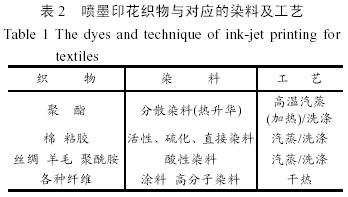 一般而言,不同的紡織品種類需對應不同染料類型的墨水組成,見表2(原文亦無表一)。