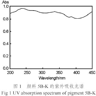實驗選擇了Irgacure184、Irgacure651、Irgacure907、Irgacure369 和Irgacure819 五種光引發劑進行對比實驗(光引發劑結構見表1),測定了顏料和光引發劑的紫外吸收光譜。顏料的紫外吸收光譜見下圖1,光引發劑的紫外吸收光譜見下圖2。