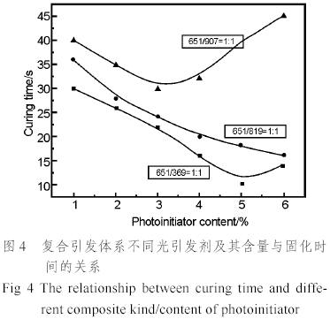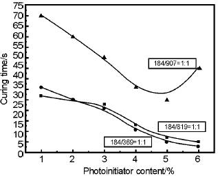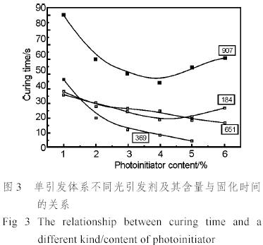 光引發劑及其含量與固化時間的關系。