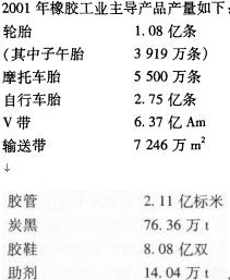 我國橡膠工業(yè)始建于1915年的廣東兄弟創(chuàng)制樹膠公司,迄今已有88年歷史。1949年建國以前,橡膠工業(yè)很弱小,年耗膠量僅1.3萬t,生產(chǎn)輪胎3萬條,大部分橡膠制品依賴國外進口。建國以后,橡膠工業(yè)經(jīng)歷了由小變大、由弱變強的發(fā)展歷程。到改革開放開始的1978年,耗膠量增加到 43萬t,輪胎產(chǎn)量達到936萬條,橡膠工業(yè)初具規(guī)模。改革開放政策給橡膠工業(yè)帶來了勃勃生機,經(jīng)過20多年的快速發(fā)展,到2001年耗膠量達到 230萬t,僅次于美國,居世界第二位。輪胎產(chǎn)量達 1.08億條,僅次于美國、日本,居世界第三位。自行車胎、膠鞋產(chǎn)量則居世界首位。中國橡膠工業(yè)現(xiàn)已形成由輪胎、自行車胎、膠管、膠帶、膠鞋、膠布、密封、減震隔震、建筑防水、醫(yī)療衛(wèi)生、日用橡膠、電子橡膠、油田橡膠制品等18個大類5萬多個產(chǎn)品規(guī)格組成的,包括橡膠原材料、產(chǎn)品、生產(chǎn)設(shè)備和檢測儀器、科研設(shè)計、新產(chǎn)品開發(fā)在內(nèi)的體系完整的大產(chǎn)業(yè)。橡膠工業(yè)占化學(xué)工業(yè)總產(chǎn)值 1/5,利潤、利稅為1/4,成為國民經(jīng)濟中舉足輕重的重要產(chǎn)業(yè)。