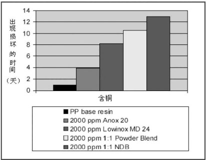聚烯烴在生產和使用過程中很容易氧化。通過使用合適的穩定劑能夠控制導致物理性質下降的根本原因。生產過程中穩定性的控制通常可以用磷酸或磷酸酯和酚類抗氧劑的復合來完成。經過長時間熱老化后(LTHA),經常會消耗大量的酚類抗氧劑。此過程中所有的穩定劑都是抑制氧化過程的抗氧化劑物質。第一種抗氧劑(酚類抑制劑和胺類抑制劑)是捕獲氧化過程中所發生的活性基。第二種抗氧劑(含硫增效劑和磷酸酯類)分解氧化中間體。金屬抑制劑作為一種雙重功效穩定劑,具有收集金屬污染物以防止金屬物質(銅金屬等)加速氧化及充當酚類抗氧劑的功能。