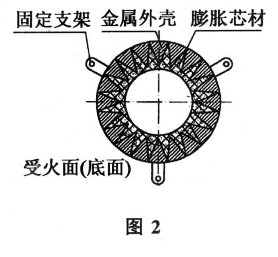 為了縮短阻火圈的耐火封堵時(shí)間,我們將殼體受火面做成鋸齒型,使底面受火面積提高50%左右,檢測(cè)結(jié)果表明封堵時(shí)間為6 min,比國(guó)標(biāo)規(guī)定的時(shí)間縮短了9min,耐火極限超過120min(耐火極限和封堵時(shí)間由上海遠(yuǎn)東防火試驗(yàn)中心測(cè)試)。
