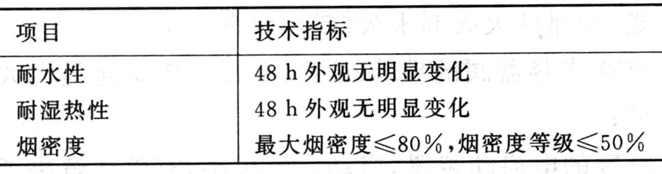 2.3.1 阻火圈的膨脹芯材的理化性能見表1
