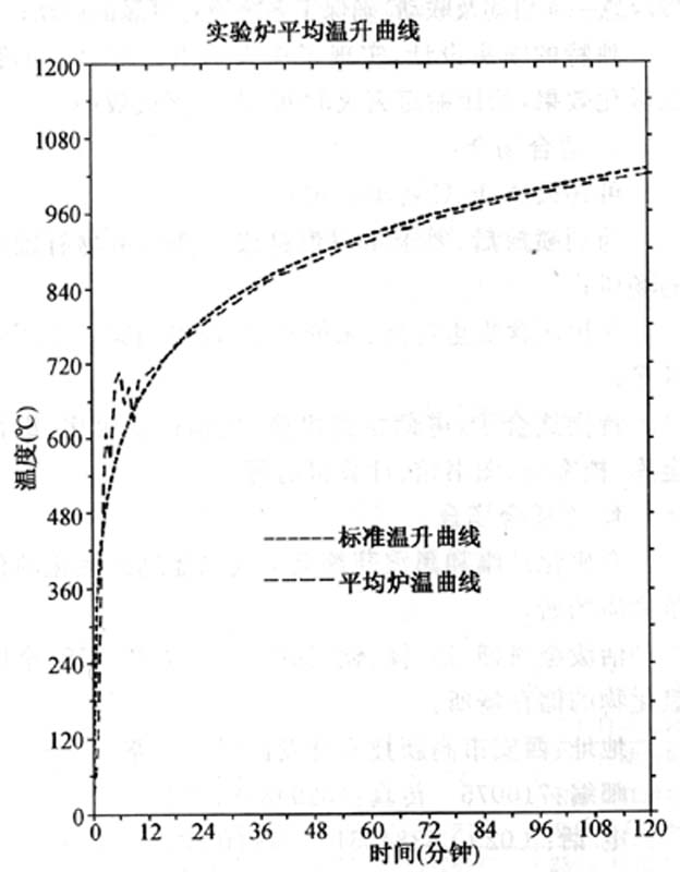 實(shí)驗(yàn)爐升溫曲線和標(biāo)準(zhǔn)升溫曲線的比較如圖3所示,阻火圈平均及最高溫升如圖4所示實(shí)驗(yàn)爐平均溫升曲線