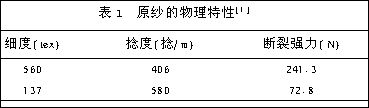 本實(shí)驗(yàn)采用2種不同號(hào)數(shù)和捻度的玻璃纖維原紗進(jìn)行空氣變形,其物理特性如表1所示。