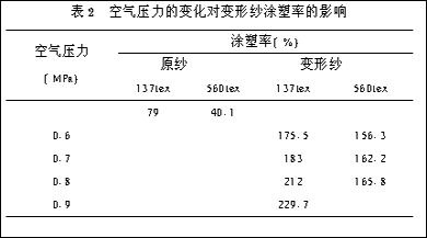 2. 空氣壓力對(duì)變形紗涂塑率的影響