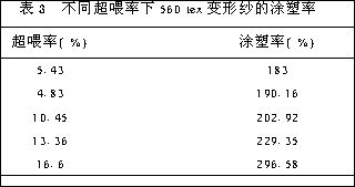 超喂率是喂入速度大于輸出速度的百分率[3]。當(dāng)恒定壓力為0 7MPa時(shí),560tex原紗在不同超喂率下變形紗的涂塑率如表3所示。
