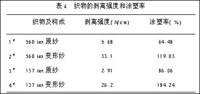 4. 變形紗織物的涂塑率和剝離強(qiáng)度