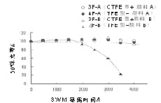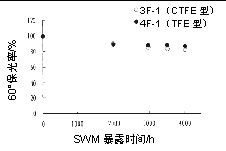 根據(jù)日本文獻的試驗結(jié)果,來比較3F型和4F型FEVE的耐候性。文獻中介紹,通過一種陽光老化機(SWM:Sugn測試儀器有限公司)暴露結(jié)果如圖1所示[2]。