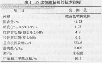 3.1.1 所制得PS改性膠粘劑的各項(xiàng)技術(shù)性能見表1