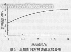 從圖3看出,剪切強(qiáng)度隨著反應(yīng)時(shí)間的增加而上升,反應(yīng)超過2.5h以后,剪切強(qiáng)度趨于穩(wěn)定,這表明2.5h后,改性反應(yīng)隨著引發(fā)劑的耗盡基本完成。