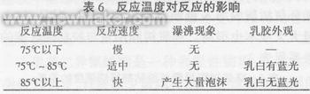 聚合接枝的溫度對反應(yīng)的影響如表6所示