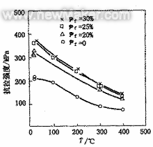 圖1 K2O.6TiO2W/Al復合材料的高溫抗拉強度