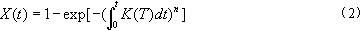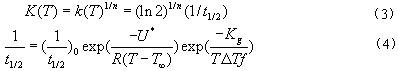 式中積分下限表示結晶起始時刻,計為0時刻;K(T)為溫度T(t)下的非等溫結晶動力學速率常數,K(T)=k(T)1/n。