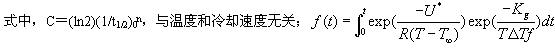 Isayev等[7]在分析聚對苯二甲酸乙二醇酯(PET)的非等溫結晶時,引入Hoffman-Lauritzen形式[8]的速率常數,將Nakamura方程成功推廣到降溫速度為2到40℃·min-1下的結晶過程。