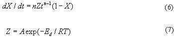 (8) 并且假定其中的結晶速率Z與溫度的關系可用Arrhenius公式描述: