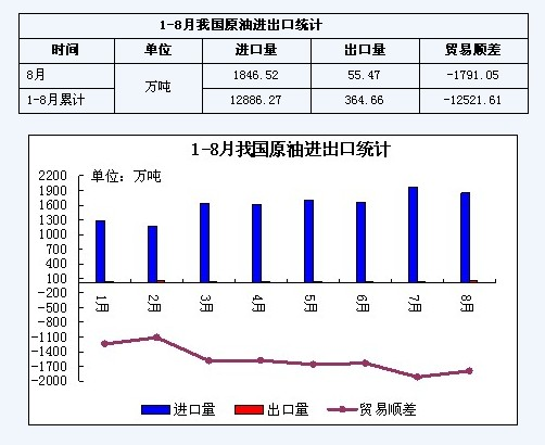 2009年1-8月我國原油進出口統計