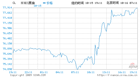 根據美國能源部下屬的能源情報署當天公布的最新庫存報告,在截至10月9日的一周里,美國商業原油庫存增加40萬桶,遠遠低于此前分析人士的預期。另外,同時公布商業汽油和餾分油庫存數據大幅下降,更是出乎市場預料,導致國際油價應聲上揚,盤中最高一度接近每桶78美元。