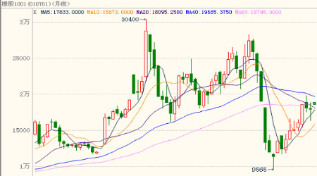 圖為滬膠1001月線走勢圖。(圖片來源:格林期貨)