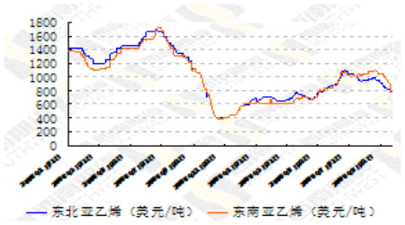 圖為乙烯現貨價格走勢圖。(圖片來源:西南期貨)