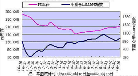 PE現貨庫存與中塑倉單LLDPE指數變化對比圖
