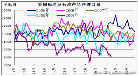 圖為美國原油及石油產品凈進口量走勢圖。(圖片來源:北京中期)